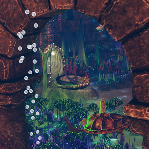 Description: The Mer Grotto at A Wondrous Place is full of aquatic life with the sun providing extra light in areas. See the remnants of a forgotten realm and the massive power of aquatic life.